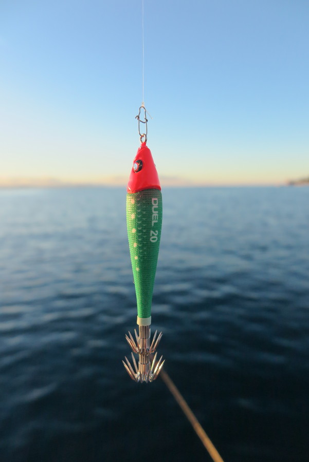 Zahvaljujući svjetlećim očima i tijelu koje se u mraku prozire kroz posebno dekoriranu platnenu oblogu postignuta je prirodna privlačnost kojoj lignje ne mogu odoljeti.