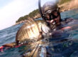 Zaranjam ponovo, a on i dalje leži na dnu, na istom mjestu. Gađam ga pod kutem tako da budem sigurna da se strijela neće odbiti i sve prolazi kako treba. Težak je 6,1 kilogram ali se zbog svog plosnatog oblika čini i veći i teži. Hvatam ga rukama i planiram prići obali da ga lakše skinem sa strijele.